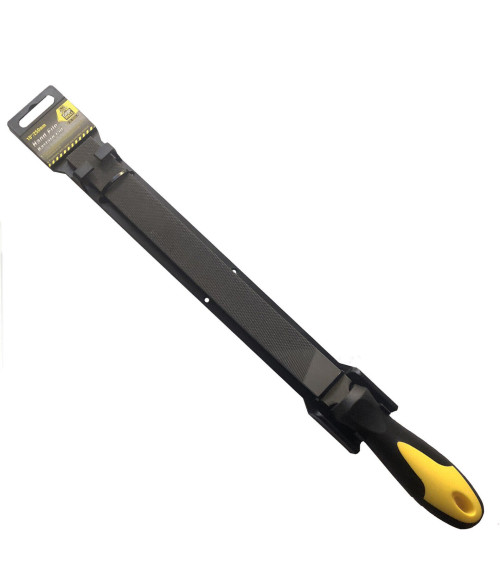 Gripwell 10" / 250mm Flat Bastard Cut File. High Carbon steel hardened tempered with rust preventative finish as the file is dipped in rust preventative oil. Bastard cuts are the intermediate between the coarsest and the second cut coarseness. This level of coarseness allows for ample material removal at a rapid pace while still creating a smooth finish. Double cut refers to the fact that the file was cut twice, one cut on top of the other, in opposite diagonal directions. This double cut results in two sets of teeth at opposite angles in a crisscross pattern. Having these two opposing cuts allows for more aggressive removal of material and more pressure is often used with double cut files than single cut files to take advantage of this design. Size: 10-Inch / 250mm.