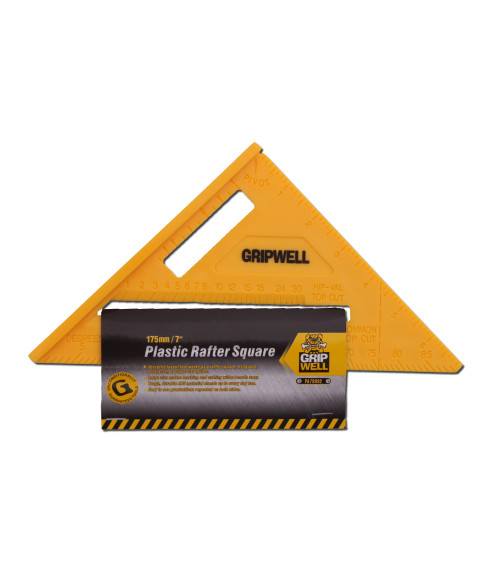 The Gripwell 10" Triangle Rafter's Layout Set Square is a versatile and durable tool designed to provide accuracy and efficiency for construction and remodelling projects. Perfect for professionals and DIY enthusiasts alike, this tool offers multiple functionalities in a single design.