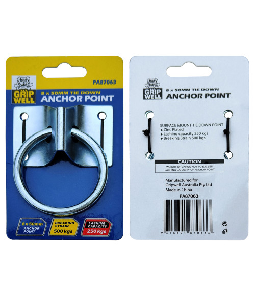 The Gripwell 8 x 50mm Anchor Point is a durable and reliable solution for securing cargo in trailers, trucks, Utes, and utility vehicles. Designed for high-strength load bearing, it ensures stability and security during transportation.
