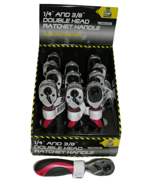 | Double Head Design | Features 1/4" and 3/8" drive sizes for compatibility with a wide range of sockets. |