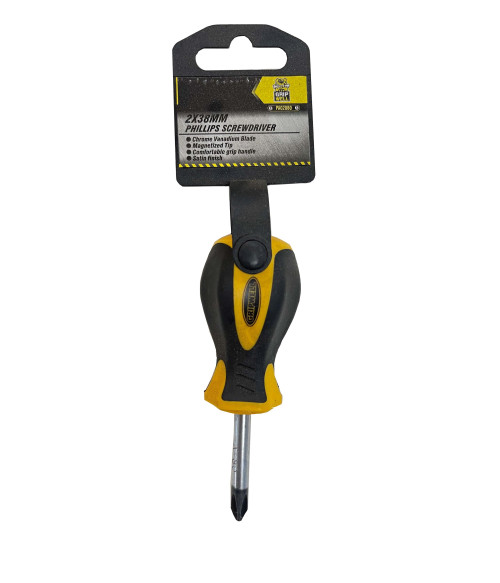 Gripwell Phillips head Screwdriver is made with high grade chrome vanadium steel. It has a Yellow and Black TPR handle for maximum comfort. This screwdriver provides high durability and strength and has a magnetic tip to ensure screws do not get lost. It is perfect for your home or worksite needs. Size: 2 x 38mm.