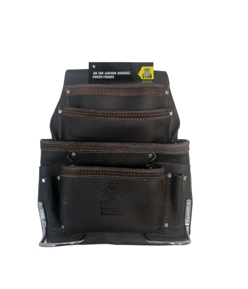 Gripwell Oil Tan leather Pouch, Riggers Trade is made from heavy duty oil tanned leather with heavy duty rivet reinforcement and belt tunnel reinforcement. It is built for all day comfort and long life, even on the most demanding job sites. These have high-capacity riggers trade pouch that provides plenty of room to store tools and fasteners.