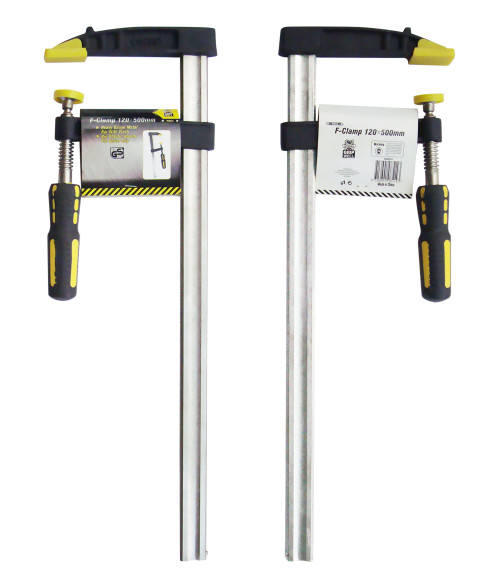 Gripwell Quick Action 18-Inch F Clamp with quick release function and a sturdy non slip bi-material handle. Heavy duty F clamp is great for any metal or wood work projects. Heavy gauge metal bar with teeth. Big plastic handle for better grip. Great clamps for glue ups and other projects. Equipped with non marring caps to prevent marking of the work piece. Size: 120 by 450 mm.