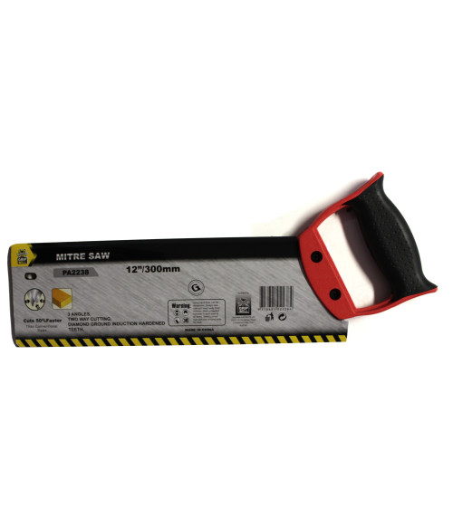 Gripwell 12" / 300mm Mitre Saw, with diamond ground induction hardened teeth for long lasting sharpness. 3 angles and cutting faces allowing for two way cutting. Great for cutting through wood.