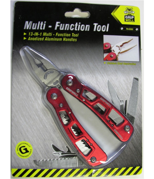 The Gripwell Stainless Steel Multifunction Tool is a durable and versatile companion for various tasks, offering 13 essential tools in one compact design.