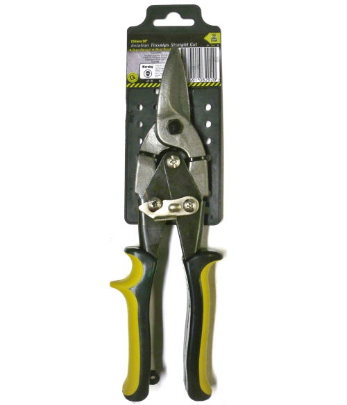 Gripwell Straight Aviation Tinsnips. The easy-grip plastic handles gives it a very ergonomic design. Ideal snip for cutting aluminium, vinyl siding, screening, cardboard, leather and copper. High leverage compound cutting action. Made of forged alloy steel.