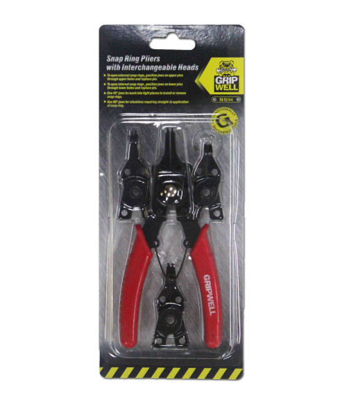 Gripwell Circlip plier with 4 Interchangeable Heads are an essential part of any toolbox. Great for removing or tightening hard to get to places where leverage can be hard to come by. Easy to Open External snap rings, position jaws on upper pins through upper holes and replace pins. You can use 40 degree jaws to reach into tight places to install or remove snap rings. Use 90 degree jaws for situations requiring straight-in application of snap rings. Heat treated laser teeth allow for a better and longer lasting grip.