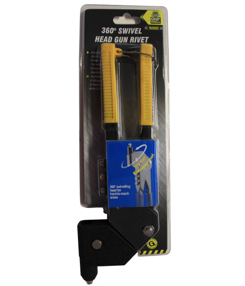 The Gripwell Rivet Gun with 360° Swivel Head is a versatile and durable tool designed for precision and ease of use in any riveting application. 360° Swivel Head allows for convenient access to tight or hard-to-reach spaces, enhancing versatility and usability. Steel and Die-Cast Construction that is built with robust materials to ensure superior strength and long-lasting durability, even in demanding applications. 4 Nose Pieces Included: Comes with interchangeable sizes (2.4mm, 3.2mm, 4mm, and 4.8mm) to handle a wide range of rivet sizes and applications.