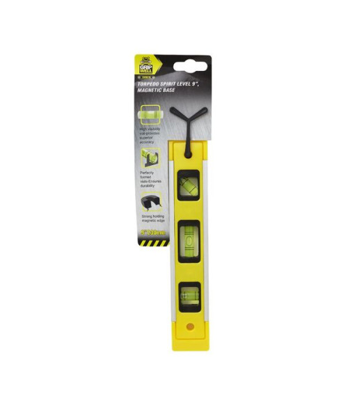The Gripwell Torpedo Spirit Level has a magnetic base which makes it easy to store and ideal for use with metal materials. It includes 3 separate vials so you can ensure level surfaces vertically, horizontally and on angles.