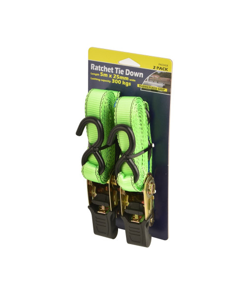 2Pc Ratchet Tie-Down 25mm x 5m LC300KG - S Hooks