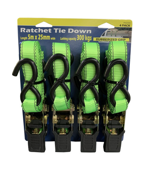 4Pc Ratchet Tie Down 25mm x 5m LC300KG - S Hooks