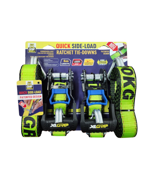 Gripwell 2PC Ergonomic Ratchet Tie Down is designed for superior load security and ease of use, featuring a patented side-loading ratchet system for 4x faster loading and tensioning. Built for heavy-duty applications, this set offers a lashing capacity of 1000kg, making it ideal for commercial and industrial transport needs.