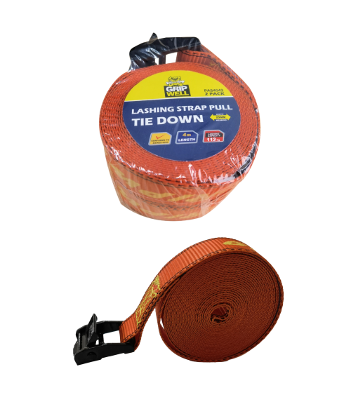 The Gripwell 2-Piece 4m Lashing Strap Set offers a dependable and efficient tie-down solution for securing lightweight loads. Built from high-strength polyester webbing and fitted with a cambuckle mechanism, these straps allow for fast and easy tensioning without compromising on safety or reliability.