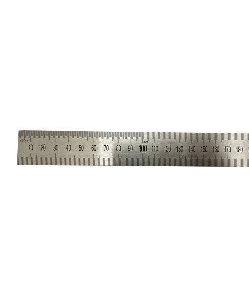 Gripwell Stainless Steel Rule is made of hardened stainless steel that does not bend but is flexible. Graduations on both upper and lower edges with numerical markings in centre. One square end and one round end with hanging hole. Thickness: 0.5mm, Graduation are in METRIC on side and in INCHES on the other. The graduations are embossed into the metal so they won't fade over time. 24-inch/600mm.